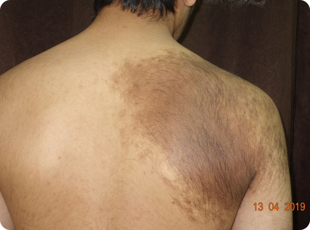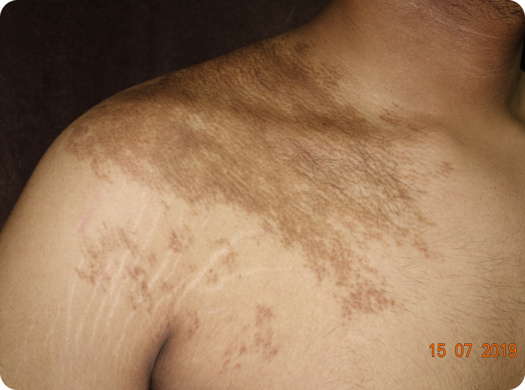 Becker’s Nevus is a benign skin disorder that usually presents as a large, irregular, hyperpigmented patch, most commonly found on the shoulder, chest, or back. It often develops during puberty and may be accompanied by excessive hair growth within the lesion. While medically harmless, many individuals seek treatment for cosmetic reasons.